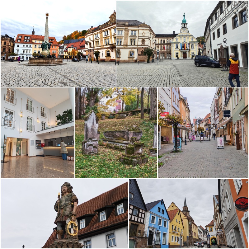 Die Plassenburg ragt über Kulmbach, der erste Kaffee im Bäcker in der Innenstadt ist überraschend preiswert. Mitten in Bayern, aber die Einwohner wollen Franken genannt werden. Am späten Nachmittag ist die Einkaufsstraße fast ohne Besucher, die meisten Geschäfte schon geschlossen und sehr viel auch nicht mehr vermietet. Es wirkt leer, ja Kulmbach wirkt leer. Und dieses „leer“ lässt die Stadt fast müde erscheinen. Viele Restaurants ganz geschlossen oder nur 3Tage offen unser Hotel mit dem Charme eines Konferenzhotels der 90iger. Für uns aber ausreichend, sollte es doch nur für die Nächte dienen und der Kaffee zum Frühstück war gut. Kulmbach ist sicher nicht hässlich, aber war auch sicher mal viel, viel schöner. Ich habe mal in den 2 Collagen Kulmbach in den verschiedenen Ansichten versucht zu zeigen.